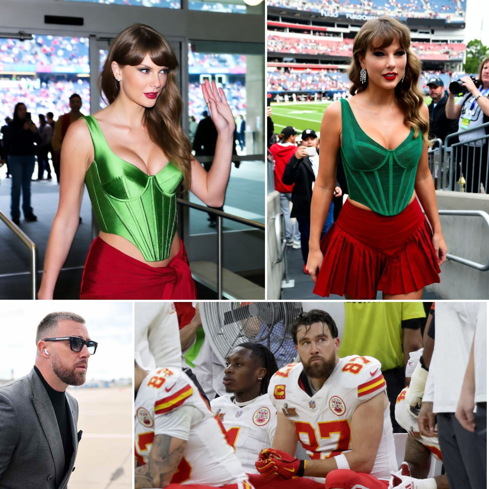 It was supposed to be a night of football thrills, but instead, Taylor Swift’s surprise appearance at the Chiefs vs. Bills game turned into one of the most talked-about moments in sports and pop culture this season. The global pop icon arrived midway through the second quarter, dressed in a jaw-dropping Halloween-inspired outfit — a crimson trench coat paired with a black lace corset and sparkling thigh-high boots. Cameras quickly turned her way, but what was meant to be a glamorous entrance took a shocking turn.