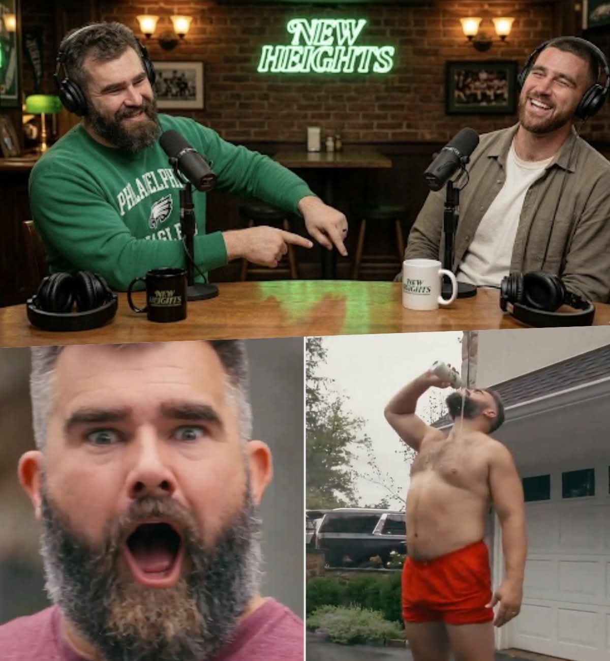 On a recent episode of the wildly popular New Heights Podcast, Jason and his younger brother Travis touched on wedding etiquette, public expectations, and—inevitably—Jason’s now-iconic tendency to go shirtless during major celebrations. When the topic turned to whether that tradition could carry over to a Swift–Kelce wedding, Jason didn’t hesitate to crack a joke.